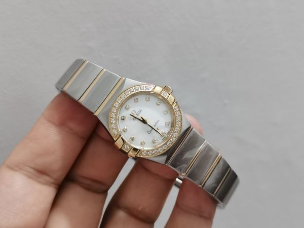 Omega Double Eagle Constellation 27mm 316L Steel Swiss Quartz Movement Gold/Diamond Bezel Watch