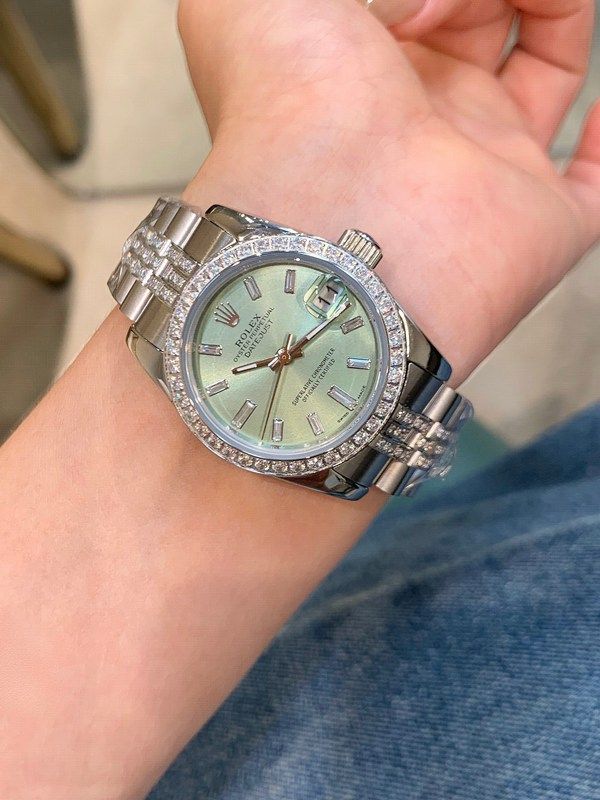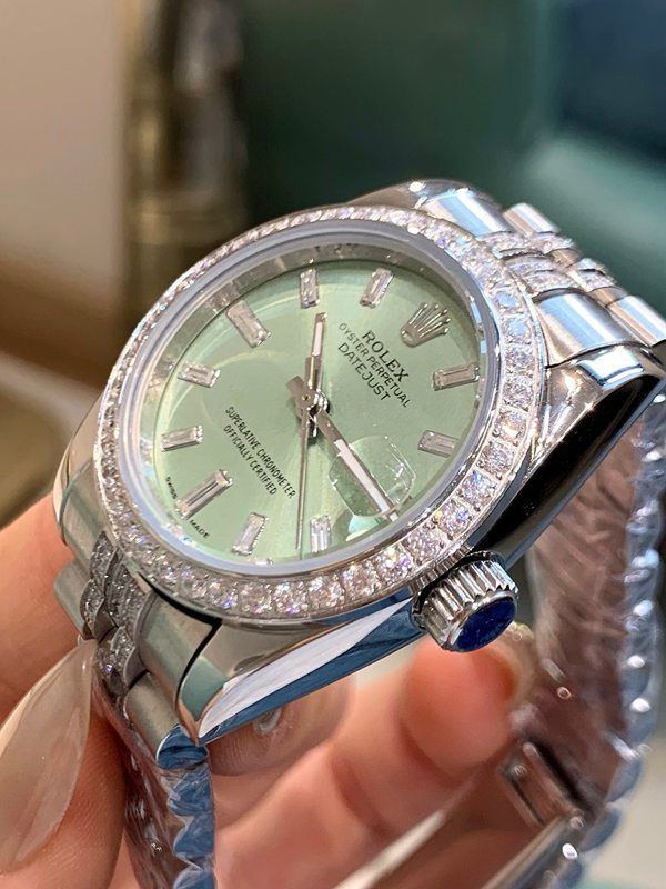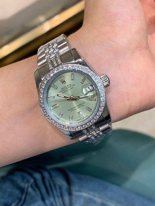 The mint green dial boasts striking layers of depth in the light, with diamond accents sparkling brilliantly. It effortlessly complements both daily and formal occasions, exuding impeccable elegance.