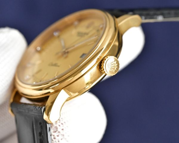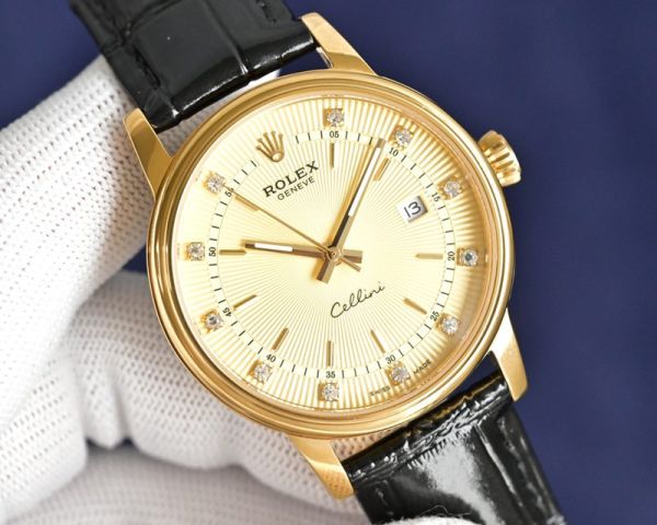 Rolex Cellini watch with an 18K yellow gold case and a white sunburst dial, simple and elegant.