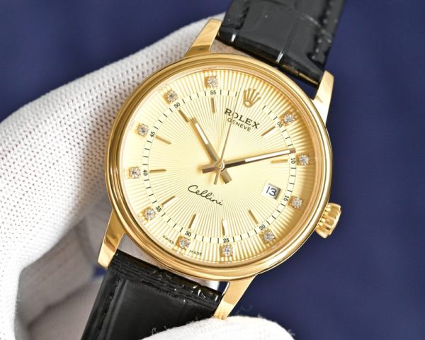Best Edition With Citizen 8215 Movement Replica Rolex Geneve Cellini Yellow Gold with White/Gold Dial Black Leather Band Watch Rolex replica sunburst dial review Rolex replica with correct reference number