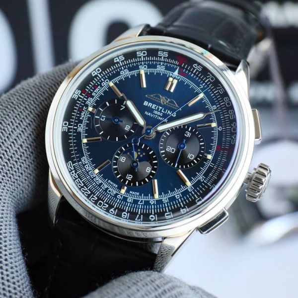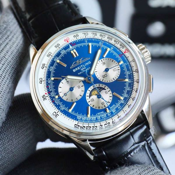 GF Factory Breitling 42MM Calfs Leather Bracelet Stable Movement Blue Watch