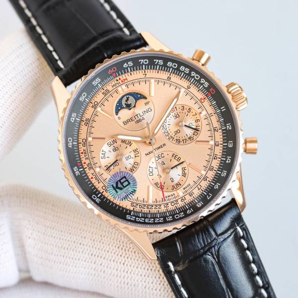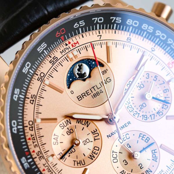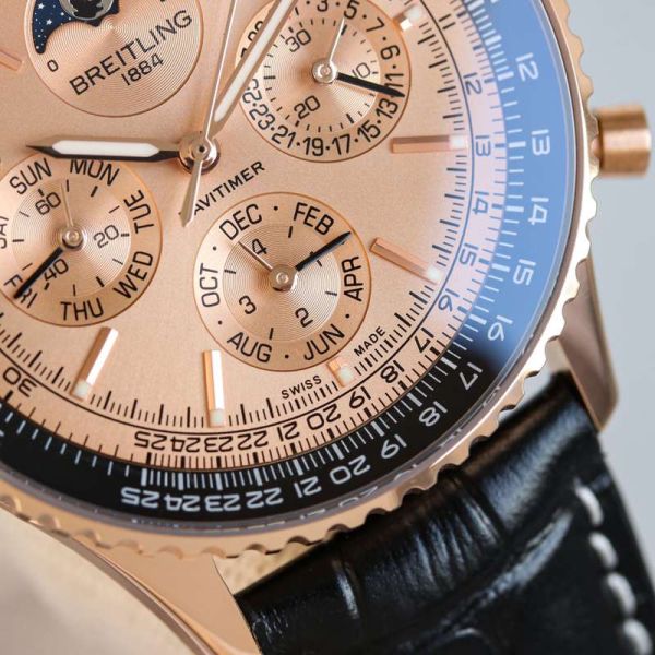Best Edition With Swiss B19 Automatic Movement Breitling Navitimer Rose Gold Dial Complications Watch