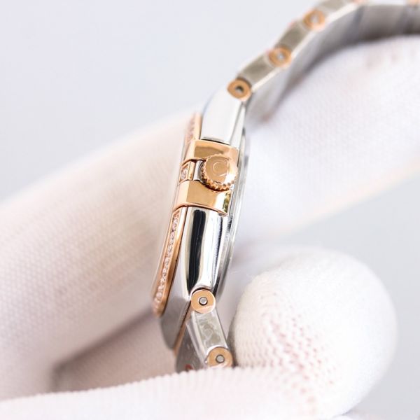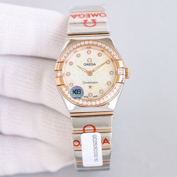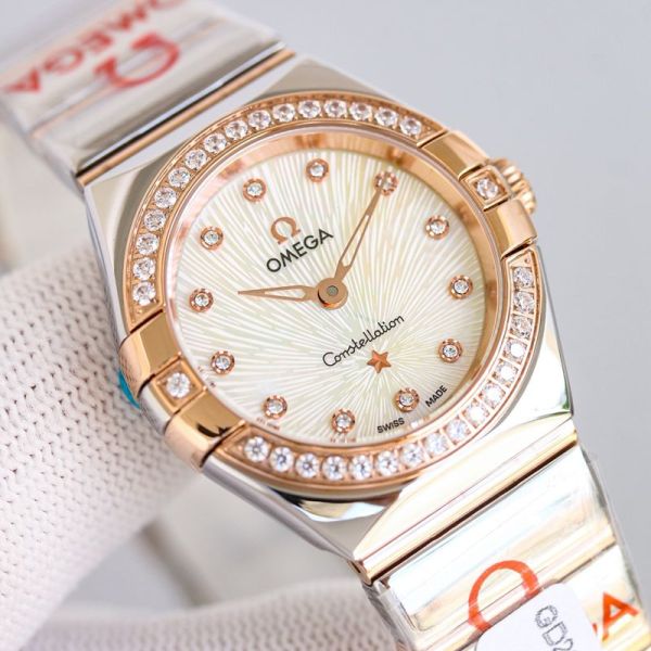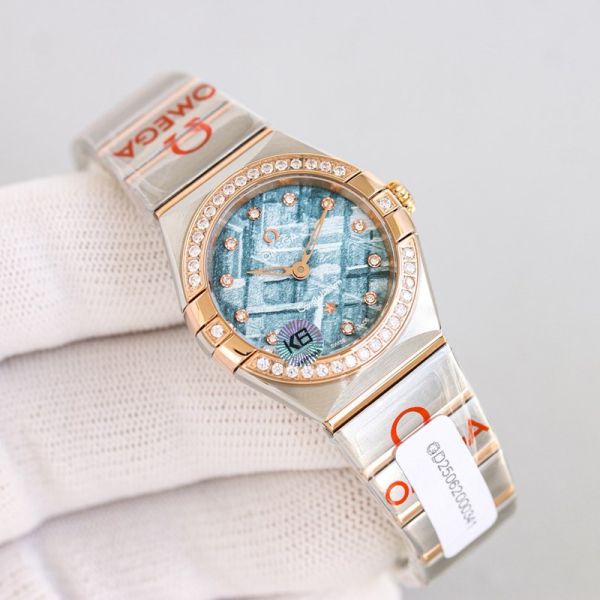 Omega 5th Constellation 28mm Quartz Movement Diamond Bezel Blue Dial Women Watch