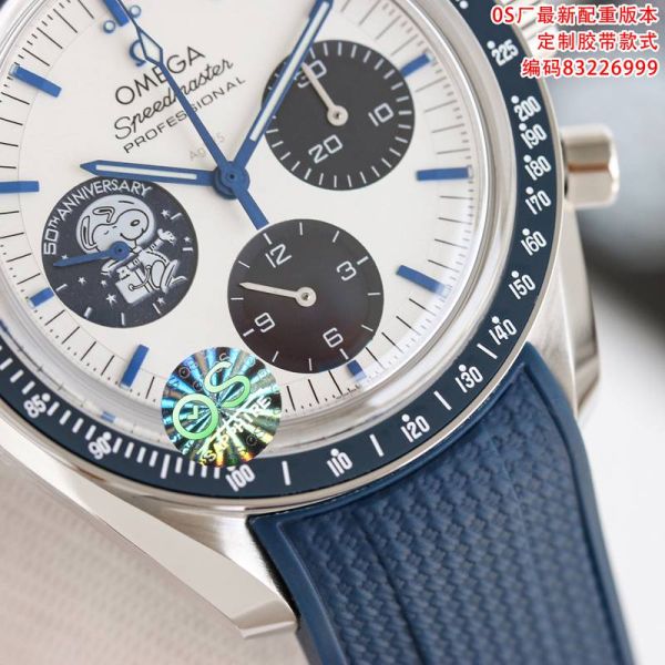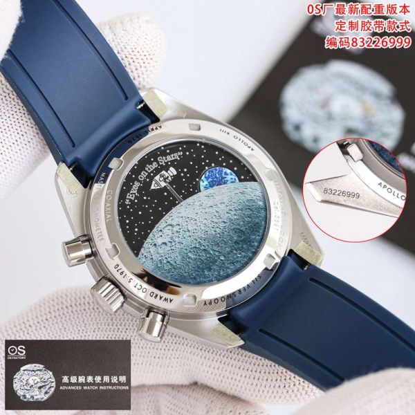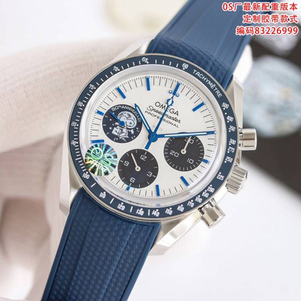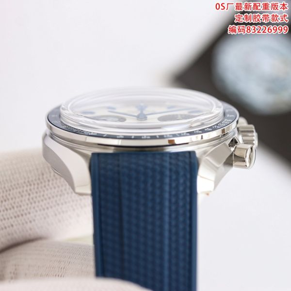 SJ Factory Best Edition With Swiss Manaul Winding Movement Omega Speedmaster Blue Rubber Strap Sterling Silver Dial Watch