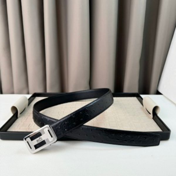 1:1 Hermes Black Leather Belt with Silver 'H' buckle Square Buckle 3.5cm