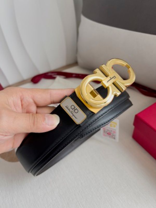 1:1 Ferragamo  Black Leather Belt No Patterns with Gold Logo buckle Automatic  Buckle 3.5cm