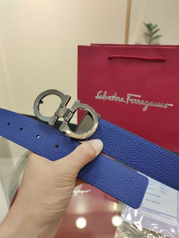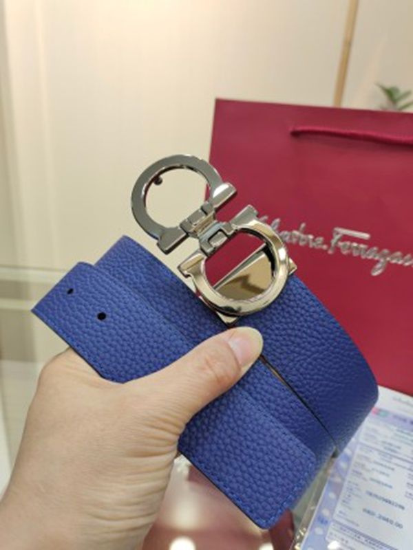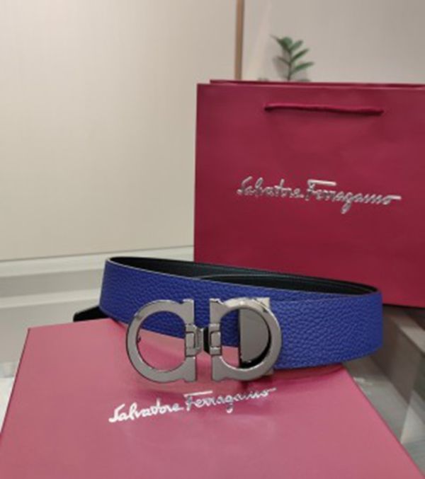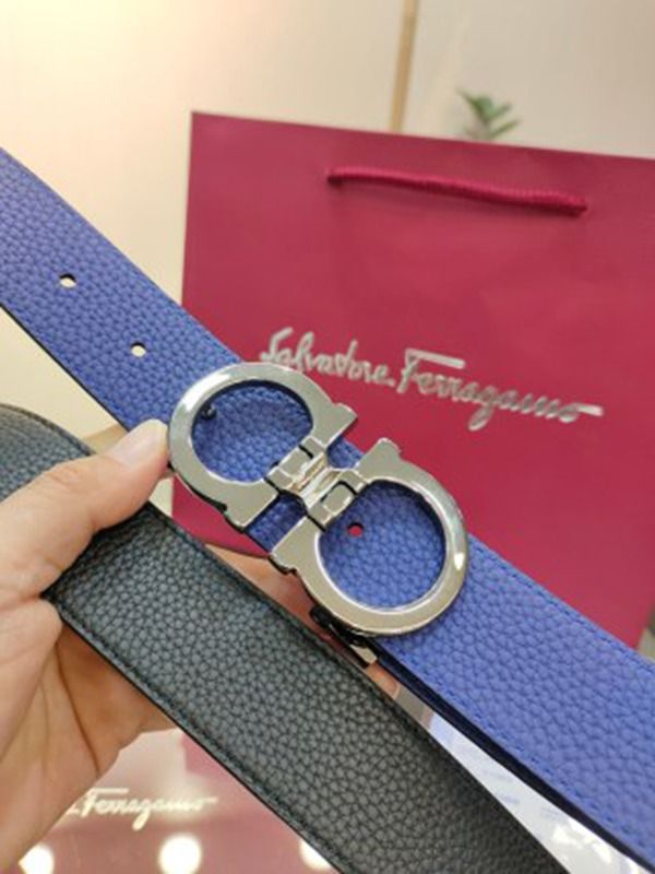 1:1 Ferragamo  Blue&Black Leather Belt  with Silver Logo buckle Copper Buckle 3.5cm