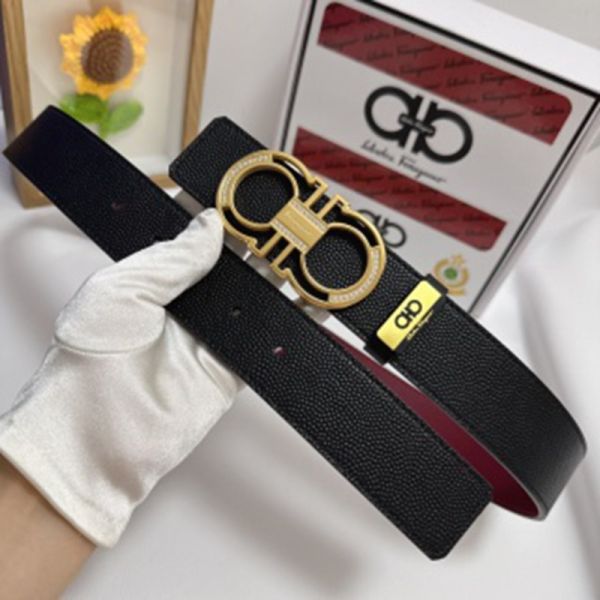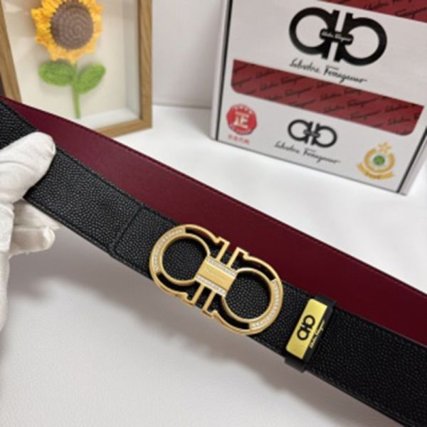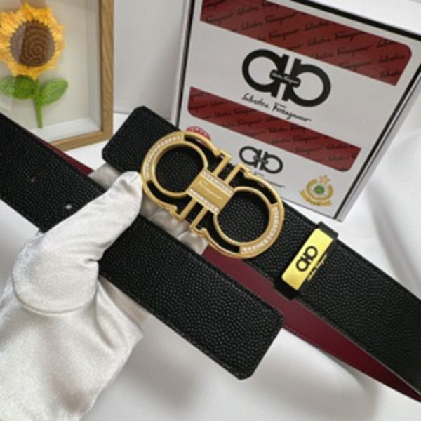 1:1 Ferragamo  Black Leather Belt  with Gold Double Logo buckle  3.8cm