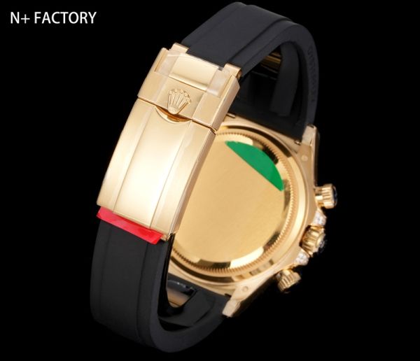 With a 40mm case diameter and a comfortable black rubber strap, it is powered by an automatic mechanical movement for precise chronograph functions, making it ideal for high-end occasions or collection.
