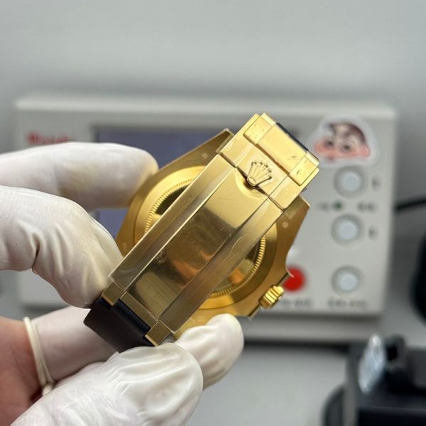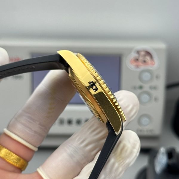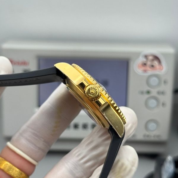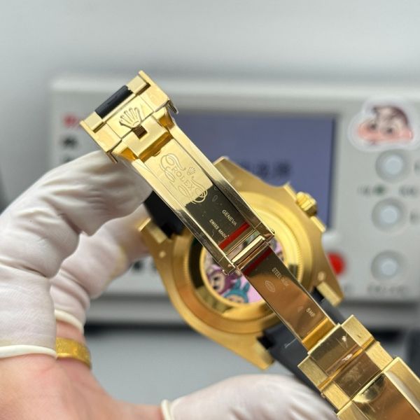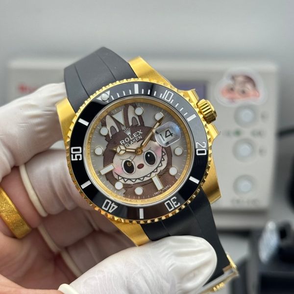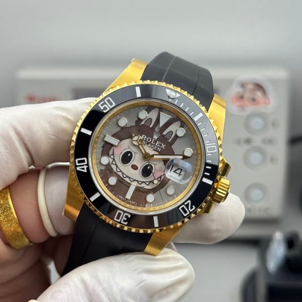 This customized Rolex Submariner watch incorporates the Labubu cartoon character into its dial, making it incredibly distinctive! Boasting a 40mm case, yellow gold paired with a black ceramic bezel, and a black rubber strap, the timepiece is comfortable and durable to wear.