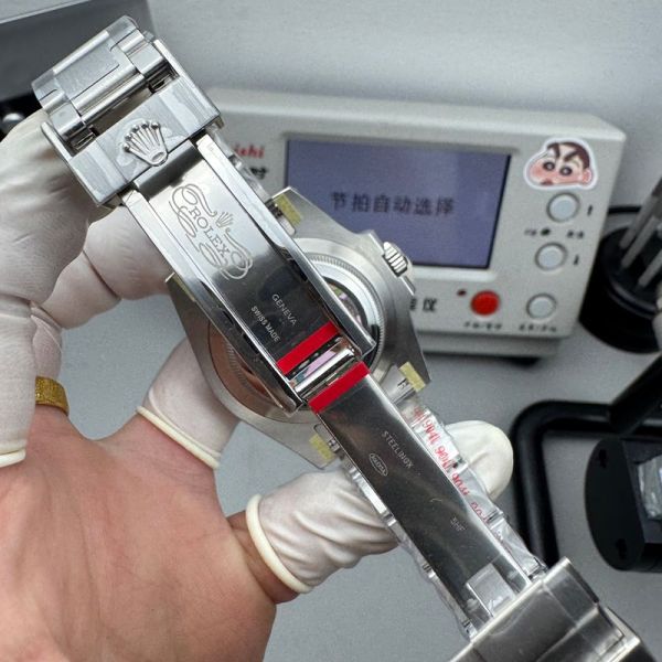 The case is made of 904L stainless steel, fitted with a black ceramic bezel and sized at 40mm in diameter. The timepiece is equipped with a 1:1 clone of the super 3135 integrated movement.
