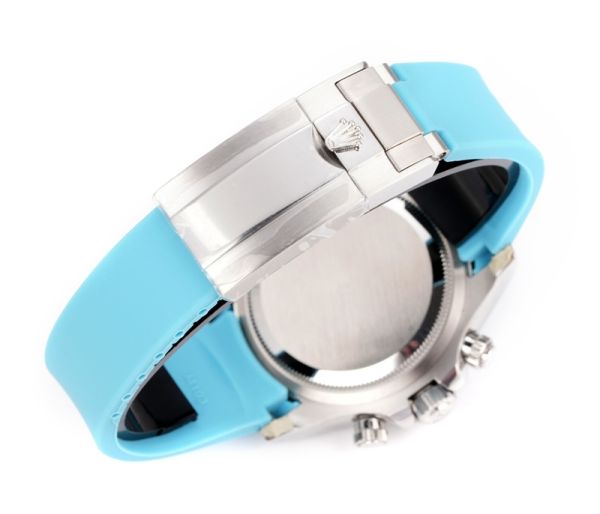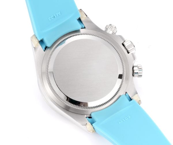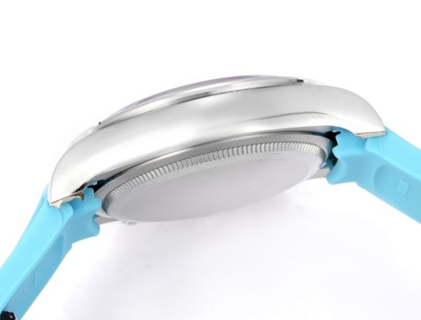 The blue rubber strap exudes a strong sporty vibe, while the sapphire crystal glass mirror boasts high hardness and scratch resistance.