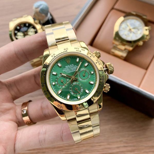 Rolex Cosmograph Daytona 116508, nicknamed the "Green Gold Daytona" for its green dial and 18K yellow gold case. Boasting a 40mm case diameter, its green sunburst dial is incredibly eye-catching.