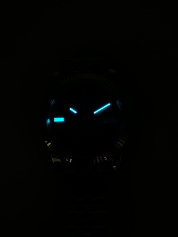 DIAL COLOR: Grey Face with Swiss Blue Lume