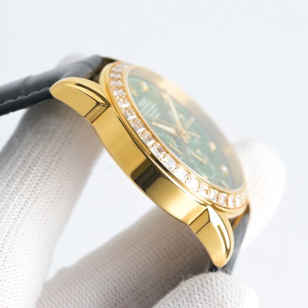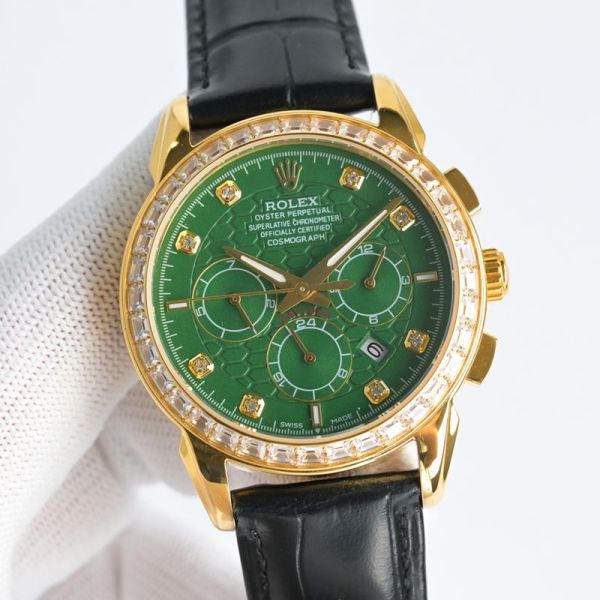 With a 40mm case diameter, it’s powered by an automatic mechanical movement and comes with a highly practical chronograph function, making it perfect for both daily wear and formal occasions. The green dial paired with diamond hour markers delivers exceptional recognizability and remarkable collectible value.