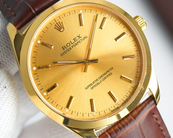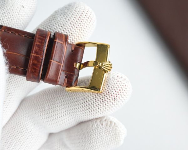 18k yellow gold case paired with a gold dial and a brown leather strap, exuding full retro and elegant charm!