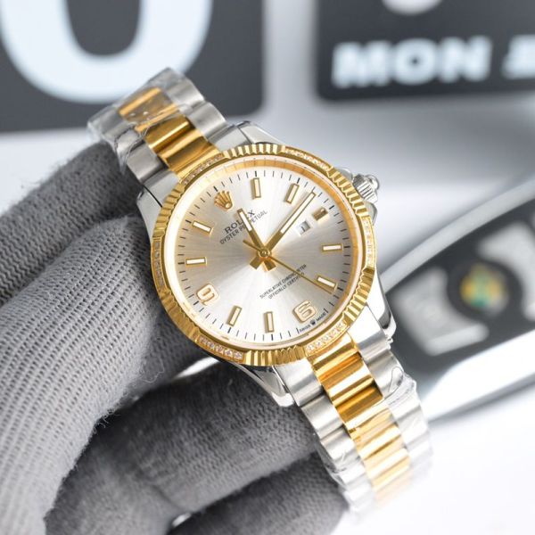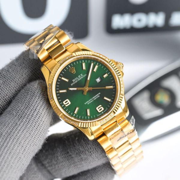 Best Edition With Japan 6T51 Movement Replica Rolex Oyster Perpetual White Gold/Yellow Gold with White/Gold/Black/Green Dial TT Gold/Yellow Gold President Band Lady Watch