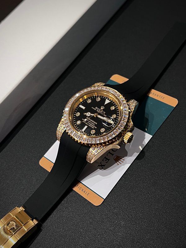 Best Edition With 8215 Movement Replica Rolex Submariner Yellow Gold with Black Dial Black Rubber Band Watch