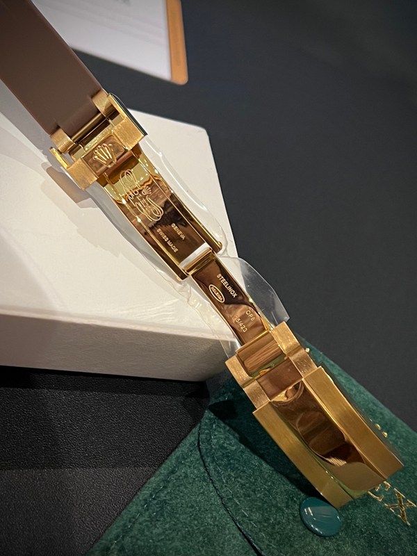Best Edition With 8215 Movement Replica Rolex Submariner Yellow Gold with Gold Dial Brown Rubber Band Watch