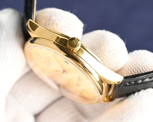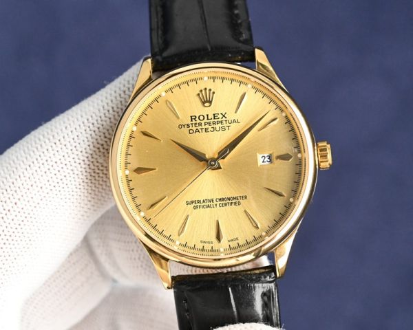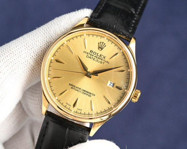 Best Edition With 8215 Movement Replica Rolex Datejust Yellow Gold with White/Gold Dial Italian Black Leather Band Watch