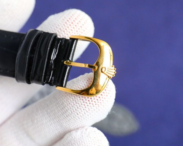 Best Edition With Swiss ETA2824-2 Movement Replica Rolex Geneve Cellini Yellow Gold with White/Black Dial Italian Black Leather Watch
