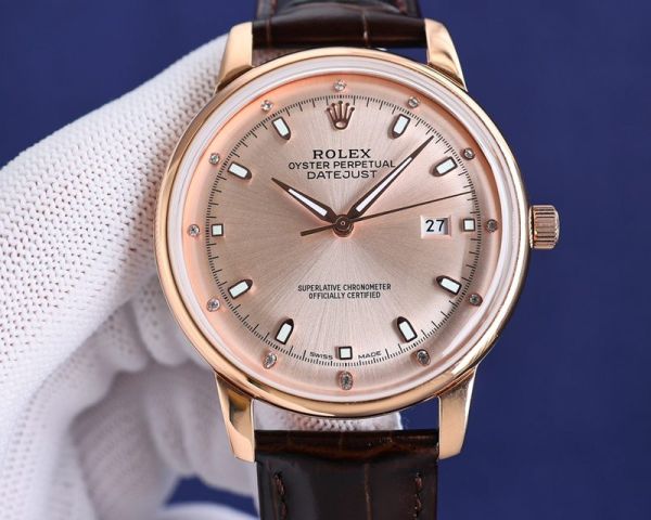Best Edition With Swiss 9015 Automatic Movement Replica Rolex Datejust Blue/Grey/Rose gold/Light Grey Face Italian Leather Band Watch