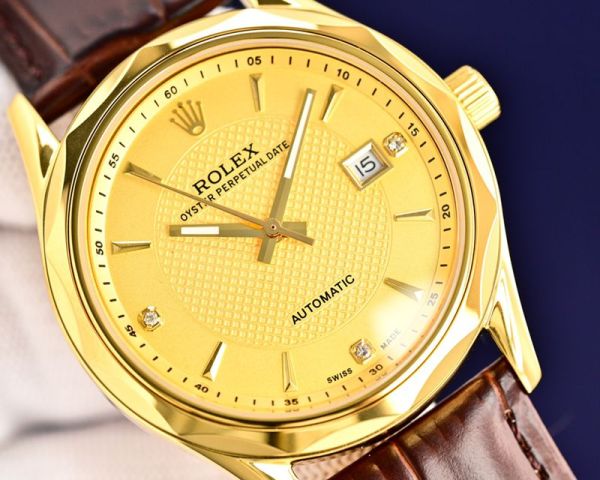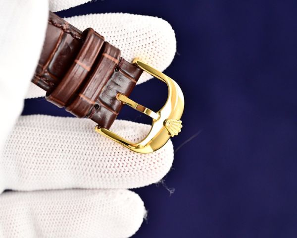 Best Edition With Japan 8215 Automatic Movement Replica Rolex Oyster Perpetual Date White/Black/Gold Face Black/Brown Calfskin Leather Band Watch