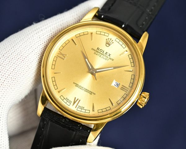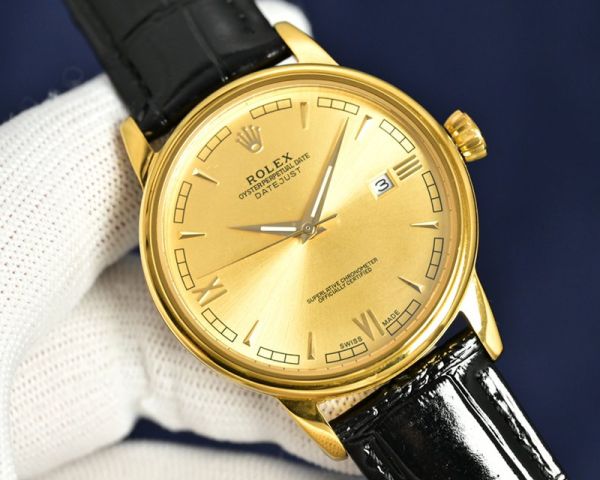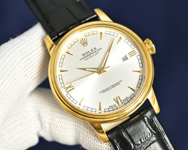Best Edition With Citizen 8215 Movement Replica Rolex Datejust Yellow Gold with White/Gold Dial Black Italian Calfskin Leather Band Watch
