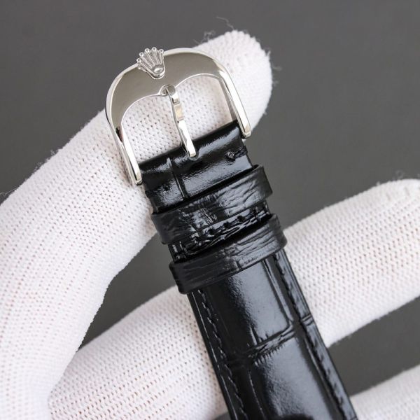 Best Edition With 28S6 Movement Replica Rolex WG/RG with White/Blue Dial Black/Brown Calfskin Leather Band Watch