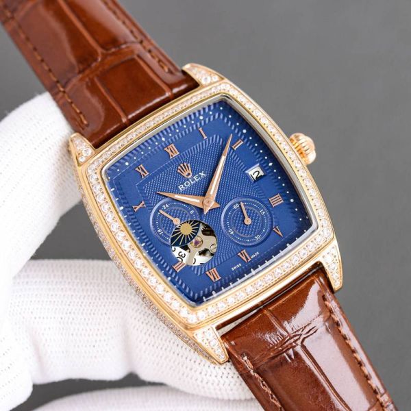 Rolex Tonneau-Shaped Case 42*9.8mm 904L Steel 28S6 Movement Blue/White Watch