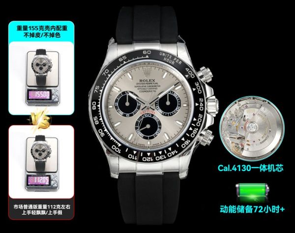 N+ Factory Rolex Daytona Replica with Rubber Strap 155g 40mm*12.2mm 7750/4310/4131 Movement Grey Watch
