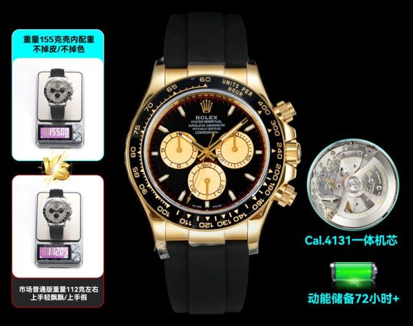 N+ Factory Rolex Daytona Rubber Strap 155g 40mm*12.2mm 7750/4310/4131 Movement Gold Case Watch