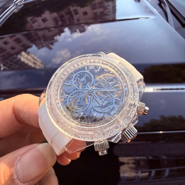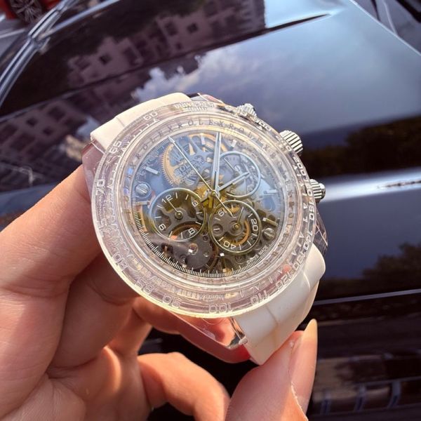 Best Edition With Dandong 4802 Automatic Movement Replica Rolex Daytona Skeleton Face Watch