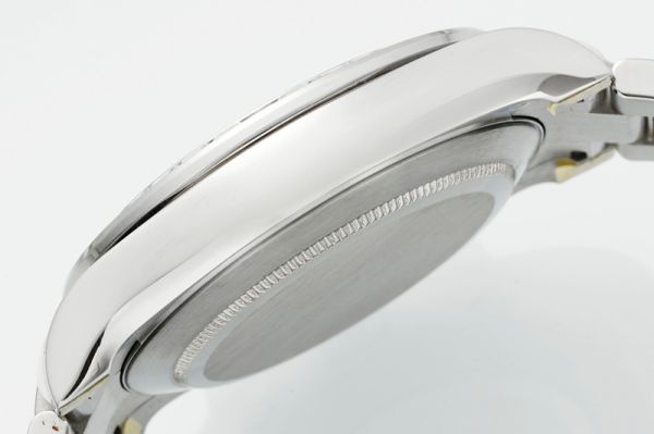 Rolex crown logo micro etched at 6 o'clock on the crystal.