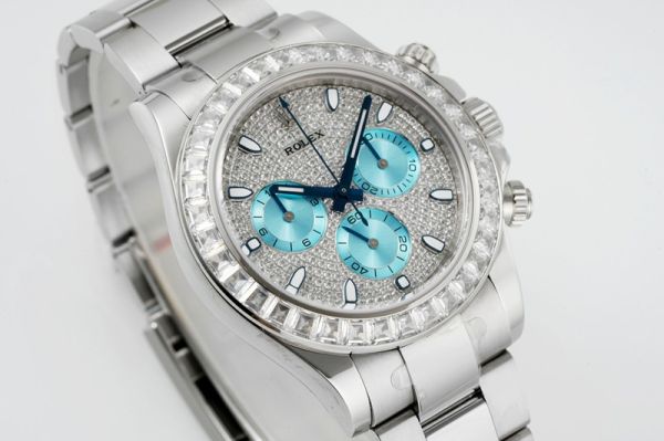 Best Edition With Dandong 7750 Movement Replica Rolex Daytona White Gold with Diamonds Dial Oyster SS Band Watch