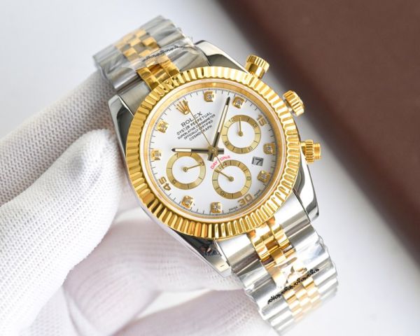 Best Edition With Imported 9100 Movement Replica Rolex Daytona Yellow Gold/White Gold with White/Gold Dial TT Yellow Gold Jubillee Band Watch