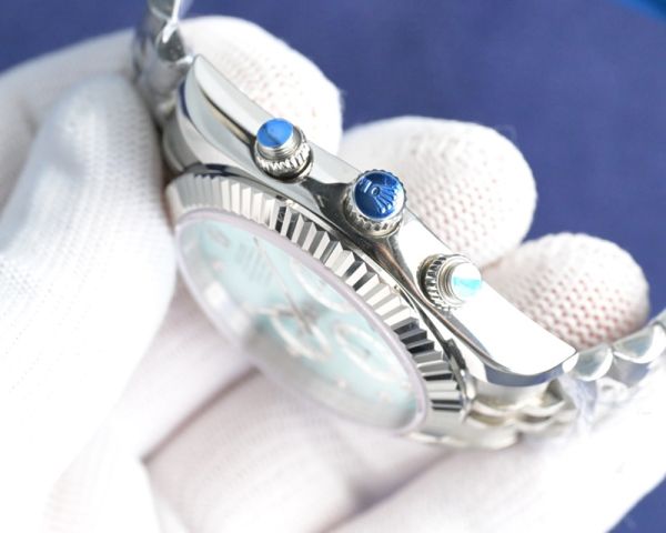 Best Edition With Imported 9100 Movement Replica Rolex Daytona White Gold with Blue/Green Dial White Gold SS Jubilee Band Watch