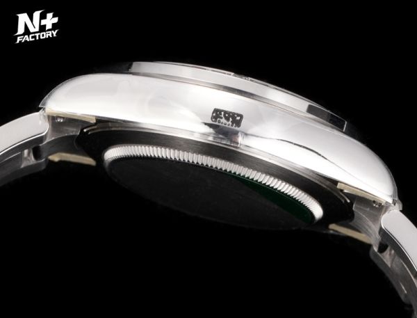 Rolex crown logo micro etched at 6 o'clock on the crystal.