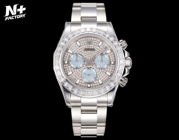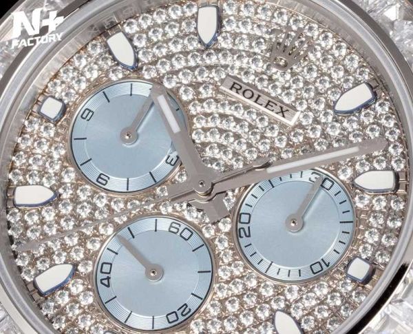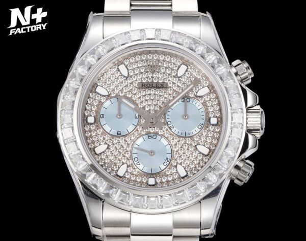 Best Edition With Dandong 7750 Movement Replica Rolex Daytona White Gold with Diamond Dial White Gold SS Oyster Band Watch