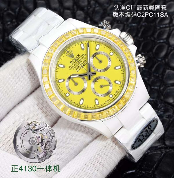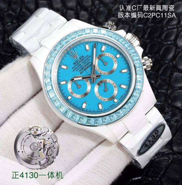 Best Edition With 4130 Automatic Movement Replica Rolex Daytona White with Blue/Pink/Green/Yellow Face Watch