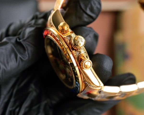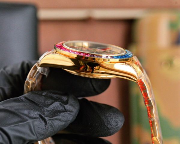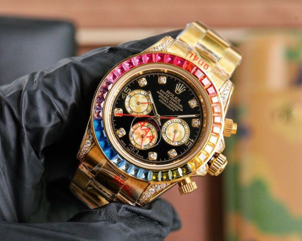 Rolex Daytona 43mm 4130 Movement Rainbow Diamond Bezel Black Face Watch