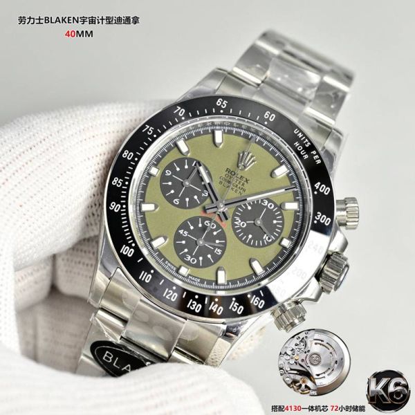Rolex Daytona 4130 Movement 904L Steel 40mm Olive Green Face SS Oyster Band Watch