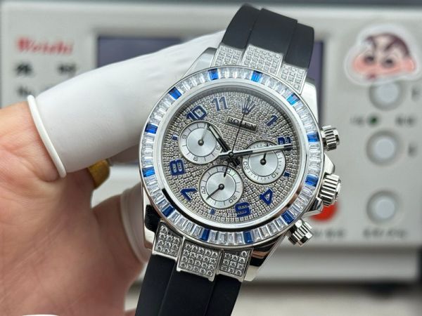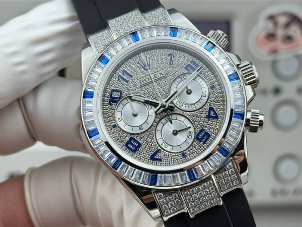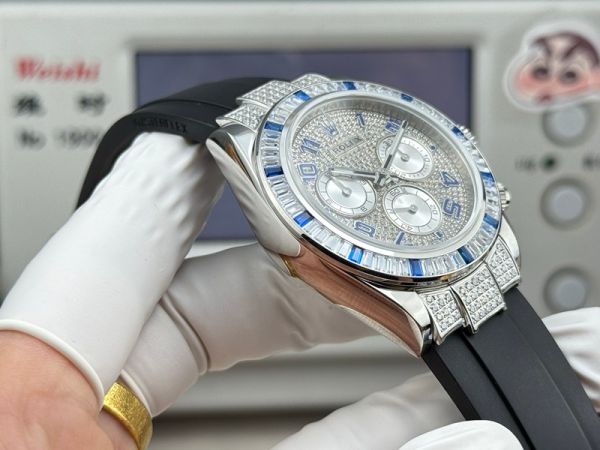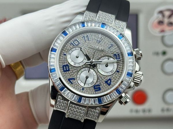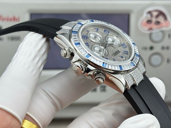 Best Edition With 7750 Movement Replica Rolex Daytona White Gold with Diamond Dial FKM Rubber Band Watch