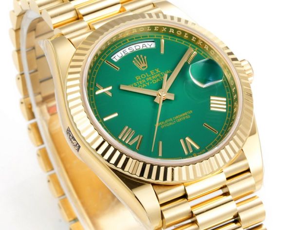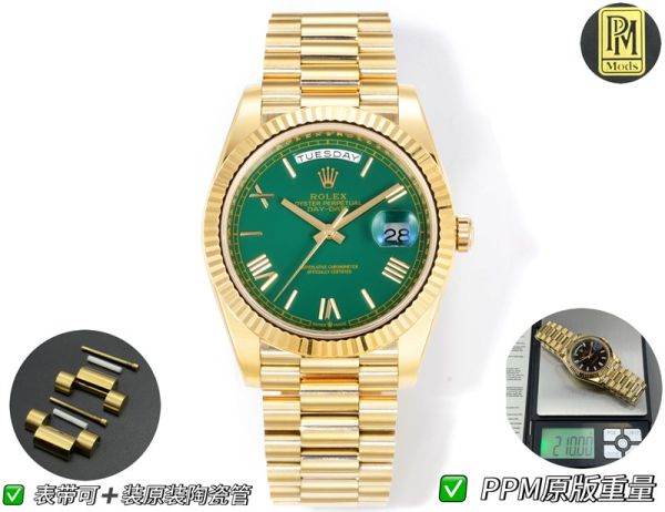 PPM Factory Rolex DD 2836/3255 Movement 18K Gold President Band Green Face Roman Numerals Watch