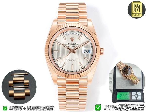 PPM Factory Rolex DD 2836/3255 Movement 18K Rose Gold President Band White Face Watch