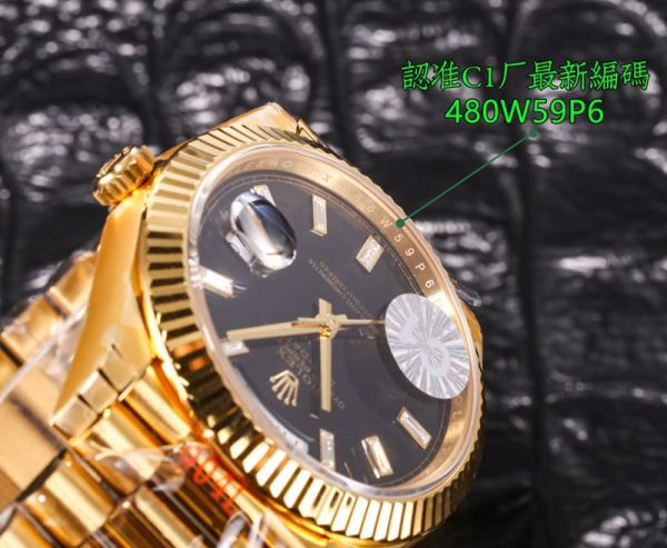 Best Edition With 3255 Movement Replica Rolex Daydate Yellow Gold with Black Dial Gold President Band Watch