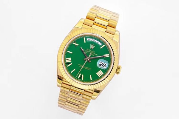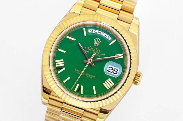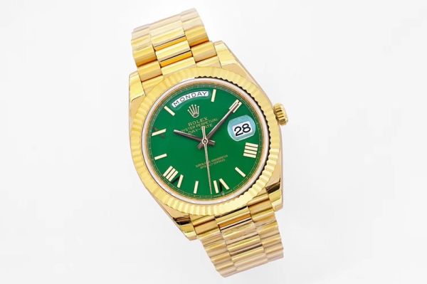 EW Factory Rolex Daydate 40mm 3255 Movement Green Face Yellow Gold President Band Watch