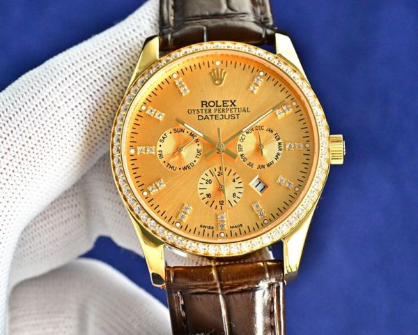 Rolex Datejust 9100 Movement Luminous Waterproof 50m 41mm Black/Brown Strap Watch