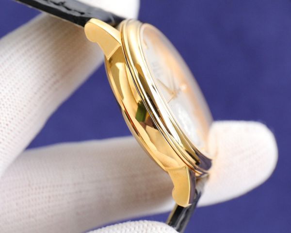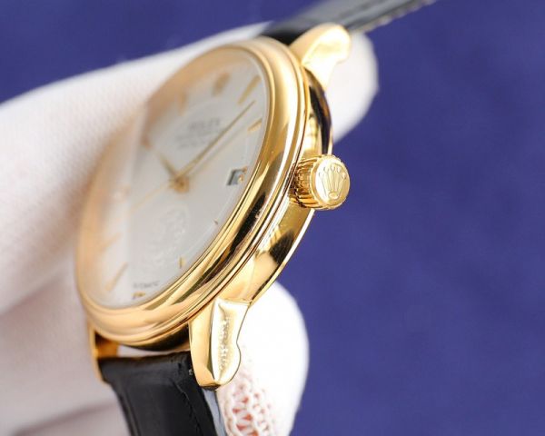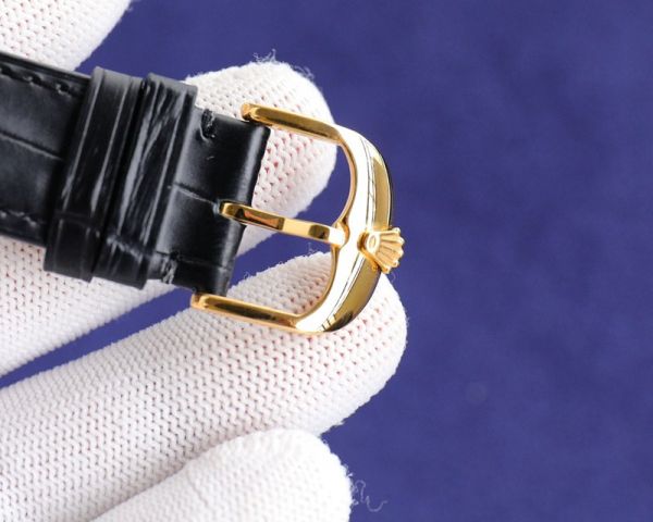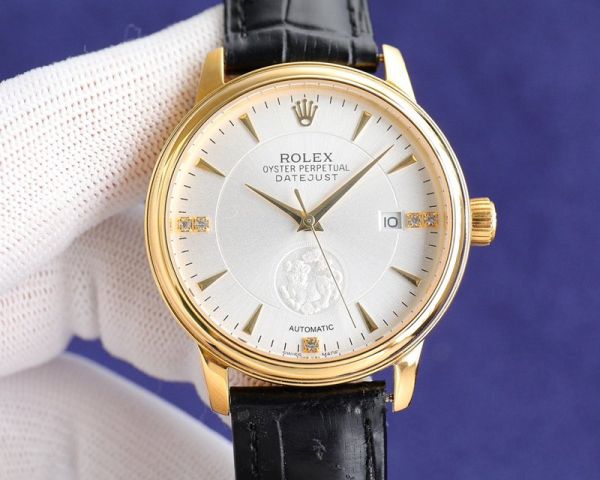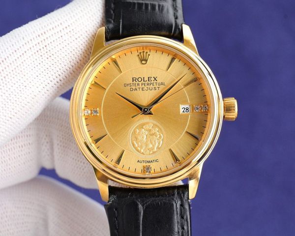Rolex Datejust Yellow Gold Watch: The case and bezel are crafted from 18K yellow gold, paired with a white dial and a black calfskin strap, classic and elegant.