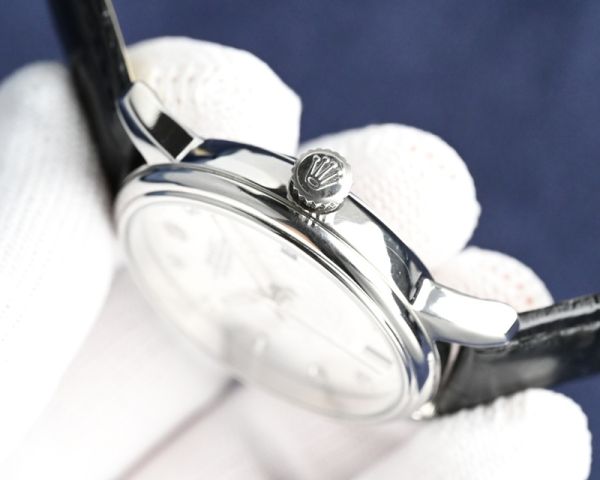 Rolex crown logo micro etched at 6 o'clock on the crystal.